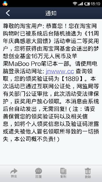 大家给我看一下,这是不是诈骗短信 大家给我看一下,这是不是诈骗短信 点击展开 這一秒,幸福 2014-11-12 18:20 为您推荐: 其他回答 想都不用想,这种短信肯定是诈骗的,如果您没事的话不妨按照提示操作,只要不给钱就行,就当玩玩吧 衷喜明2 2014-11-13 09:08 呵呵,最好别信 冰樱 2014-11-12 19:09 相关问题 大家如何处理诈骗短信的 面对诈骗短信,你们怎么做??