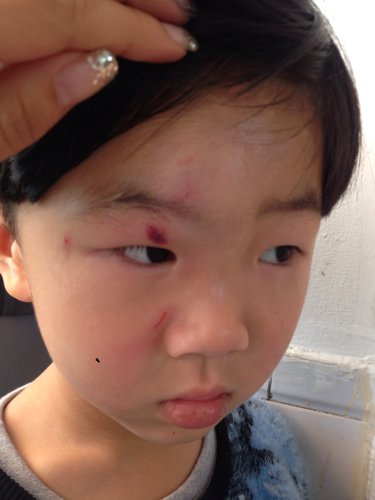 小孩昨天上厕所跑起来撞墙上起了大胞,当时给他抹了猪油,没恶心吐也没头痛,昨天下午去医院检查正常,c