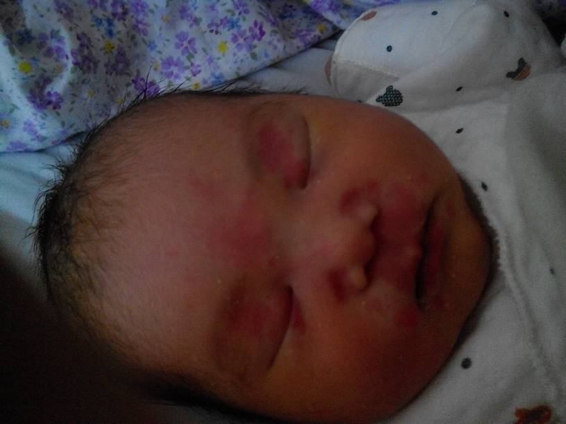 宝宝出生三天了,上眼皮给嘴那有点红,是母亲吃辣椒吃的还是怎了?有知道的么??