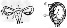 (1)7卵巢;1输卵管;5子宫;(2)6阴道;寸愿乡5子宫;1输卵管;受精;(3) ②;概基 ①胎盘;二氧化碳;分娩;(4)受精卵经过细胞的分裂、组织的分化形成人体的印纺各种组织,进一步由组织构成人体的各种器官,再由器官组成人,由八大系统构成了统一的人体