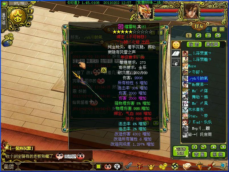 果然极品,就那枪都可以卖10+E了,再看他的宠物,又神兽变异什么来着,有几十E,唉,都是以亿记得,不记宠物,道高的话,没个6-7千RMB买不了,BT的号啊,如果道高,王者,又有人真想要,全号以万记!