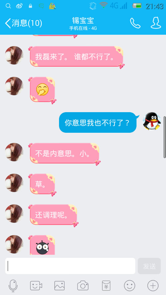 女孩子把男孩子说生气了,男孩不理女孩了,女孩发了条状态,如图,什么意思? 点击展开 匿名用户 2016-03-25 06:17 满意回答 哈哈😄,生你气了 186*****457_cOvE 2016-03-25 06:19 宝宝知道提示您:回答为网友贡献,仅供参考。 为您推荐: 其他回答 没意思 匿名用户 2016-03-25 18:37 说实话,没看明白...但是能看出来男孩不在乎女孩,就这么简单,男人哪有那么矫情。说句不好听的,也许人家女朋友或者老婆回来了,该怎么和你调情?自己琢磨吧 匿名用户 2016-03-25 06:19 相关问题 怎样知道自己怀孕是男孩子还是女孩子 孕妇是怀男孩子早期都怀在腰上,不显怀吗?女孩子的肚子大? 一对小孩子的头像 超级玛丽的 我只有男孩子的 女孩子是个粉红色衣服 我没有 帮我找找啊