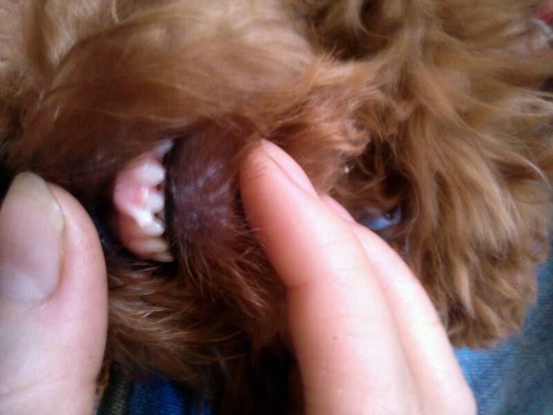 我家五个月的泰迪,它的上颚两个尖牙齿中间本来有6颗牙齿的,突然发现好像在中间多长了一颗细小牙齿,不
