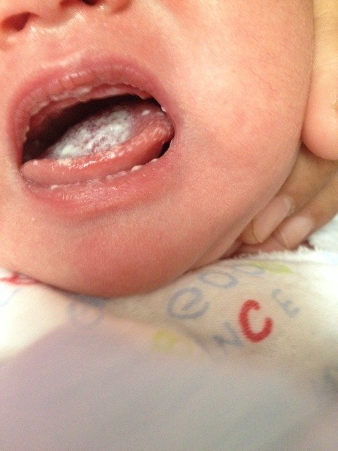 求助医生,一个星期的女宝宝,嘴唇和舌头上长了好多白色的东西,这是怎么回事?