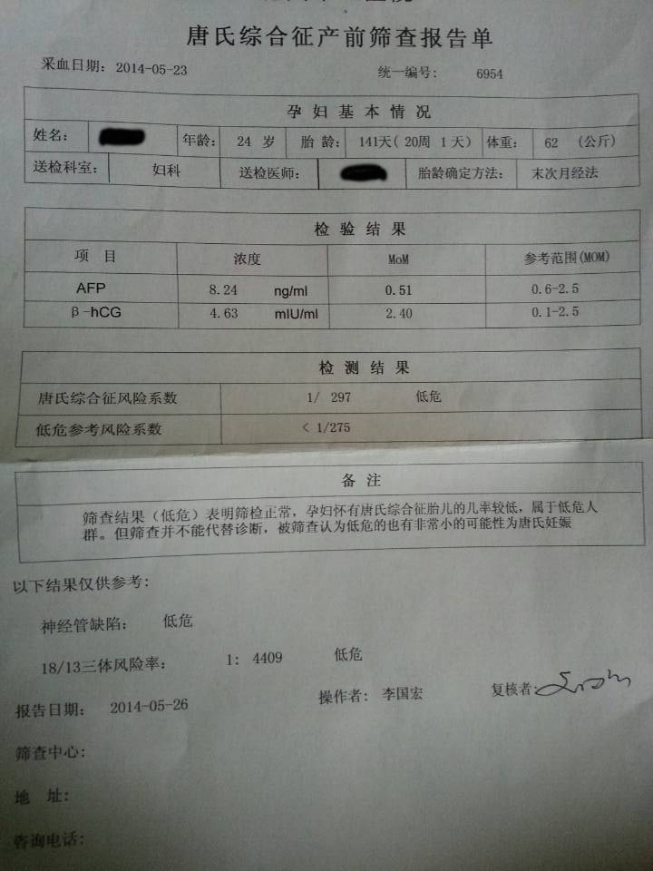 医生这是我的唐氏筛查的检查单 有什么问题吗 我在怀孕一个多月的时候曾因为尿道感染输液好几天 点击展开 匿名用户 2014-05-31 09:00 为您推荐: 其他回答 都是低风险,结果是正常的 匿名用户 2014-05-31 11:52 相关问题 我在这个月21号检查出得了尿道感染,输液三天,吃了六天的药,如果我这个月怀孕了,会对胎儿有影响吗 24号和男朋友ML,第二天不舒服去医院检查是尿道感染又吃药输液,之前几天都有ML,如果怀孕对胎儿有影响吗? 怀孕了 尿道感染了 怎么办 输液可以吗