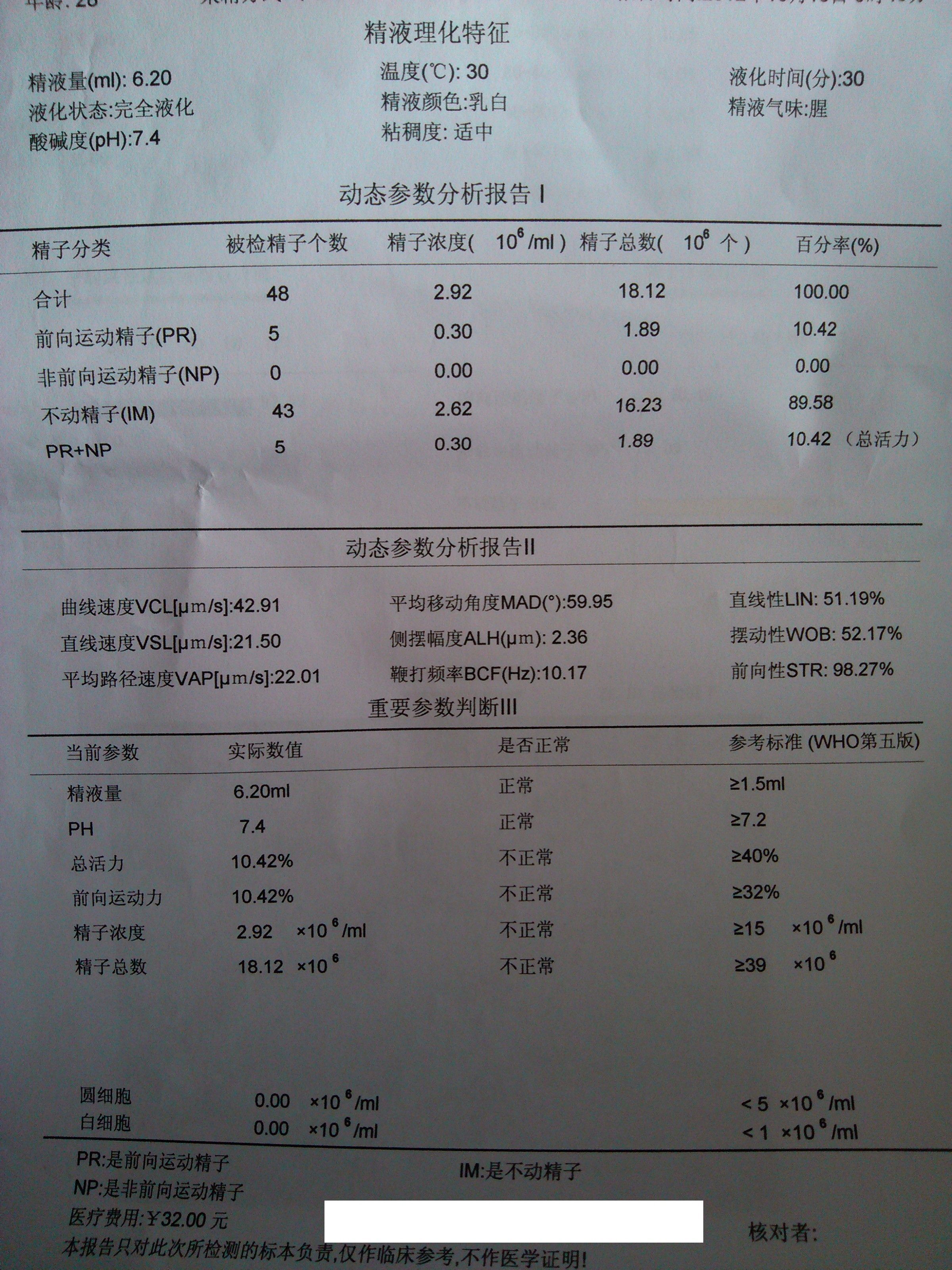 患者信息:男 28岁 陕西 西安 病情描述(发病时间、主要症状等):我结婚一年,一直没有小孩,昨天去医院做了精子检查,但是问医生情况的时候我不在身边,想请教一下医生,此检查结果是否说明没有生育的机会,或者说这种情况问题大不大,应该采取什么治疗,谢谢!!!!检查结果附后。