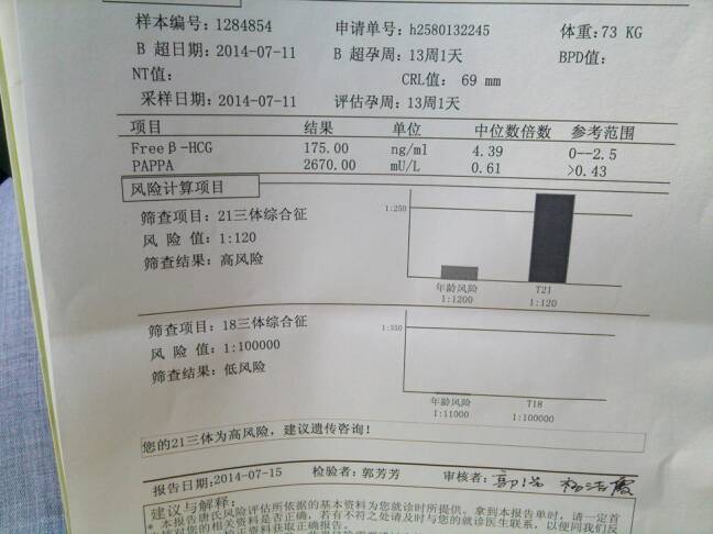 今天我收到了报告,老婆的唐氏筛查结果为高危!我应该下一步怎么做?有没有医生教我如何处理! 今天我收到了报告,老婆的唐氏筛查结果为高危!我应该下一步怎么做?有没有医生教我如何处理! 点击展开 矇猪眼二代目 2014-07-23 12:34 为您推荐: 其他回答 你好,唐氏高风险只是说有患唐氏的可能,建议可以进行羊水穿刺检查。 崇晟儿 2014-07-23 12:38 相关问题 今天去拿唐氏筛查报告,虽然没有拿到,但是医生说是高危!一下就高兴不起来了!我才25岁,都不知道什么 怀孕初期查出单纯疱疹病毒igg和igm为阳性,没有复查,16周时做唐氏筛查是低风险通过,今天医生让 今天拿唐氏报告,结果胎儿脊椎那项属于高危人群,不合格,后来做了Ba超,医生说太小看不大清,但基本没