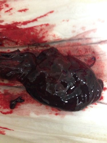 你好,从图上看,这个应该只是一个大的血块,胚囊应该是白的或粉红色,类似肉一样的东西,按之不散。安全起见,今天可以先上医院复查一下B超,看孕囊还在不在,再决定要不要吃米索。因为有少数人吃了米非司酮就可以自然流掉了。如果已经流了,就可以不用吃了。