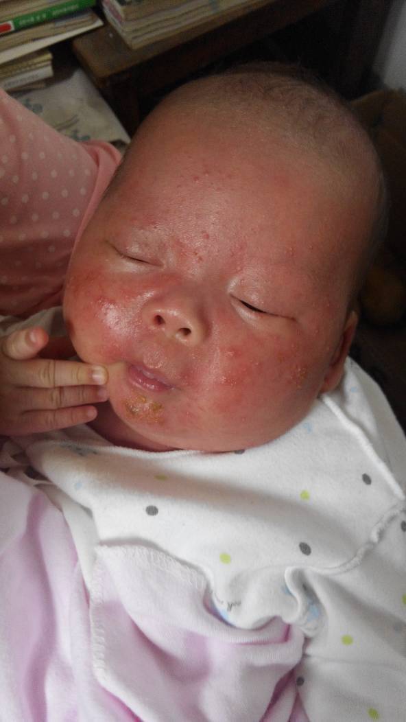 快点去医院吧!可怜的宝宝,满脸都是,不要耽误了,快去医院看看