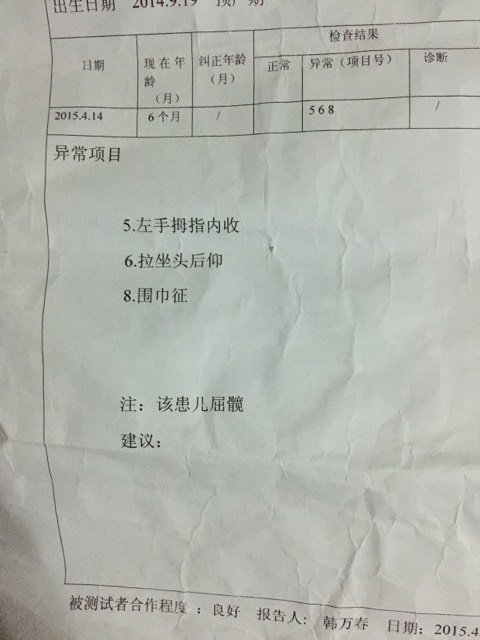 我儿子大母指内扣,磁共振也做了,这是检查结果,大夫建议住院,有懂的大夫帮看看这是怎么回事,做康复的 我儿子大母指内扣,磁共振也做了,这是检查结果,大夫建议住院,有懂的大夫帮看看这是怎么回事,做康复的老师说不用,他教我回家给孩子按摩就好了,我们是在哈尔滨儿童医院看的 点击展开 小姿态—﹋﹑高端倪 2015-05-02 19:32 为您推荐: 其他回答 祝宝宝健康, 小明喆妈妈 2015-05-02 20:18 祝宝宝健康成长 改说什么心情会好呢? 2015-05-02 19:32 相关问题 宝宝七个月,大母指内扣,去医院检查说发育慢,让做的磁共振,也没发现什么,大夫说让做康复,但做康复的 B超小脑延髓池宽0 9cm,医生建议做磁共振,现在已经取完结果,想麻烦大夫看下结果没问题吧? 磁共振报告显示[左外侧裂池局限增宽}请问大夫是什么病?谢谢