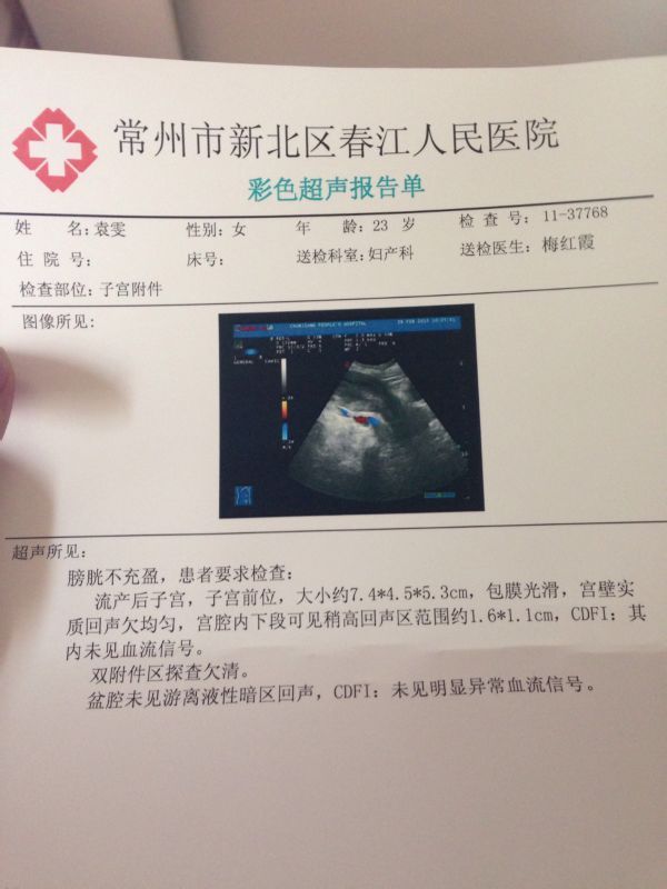 孕囊出来了吗?需要清宫吗,现在在吃妇宝颗粒,头孢克肟分散片,八珍益母胶囊 超声所见: 膀胱不充 盈,患者要求检查:流产后子宫,子宫前位,大小约7.4*4.5*5.3cm,包膜光滑,宫壁实质回声欠均匀,宫腔内下段可见稍高回声区范围约1.6*1.1cm,CDFI:其内未见血流信号。双附件区探查欠清。盆腔未见游离液性暗区回声,CDFI:未见明显异常血流信号。 孕囊出来了吗?需要清宫吗,现在在吃妇宝颗粒,头孢克肟分散片,八珍益母胶囊。 点击展开 042134zxc54321 2015-02-28 13:27 为您推荐: 其他回答 你好,看这个检查是还没有流干净呢,宫腔内下段可见稍高回声区范围约1.6*1.1cm,这个就是残留,如果排不出来旧的需要清宫的。供你参考。 cn#BfaQGGpaLp 2015-02-28 13:40 相关问题 怀孕做B超超声所见膀胱充盈差,子宫前位增,大宫腔内见大小约81*27*55mm的妊娠囊,囊内见囊及 停经45天用手洗了一下阴道第二天阴道出血去医院检查,检查部位:子宫附件 彩超,超声所见:膀胱充盈 请各位在线医生帮忙看下刚做的B超单,单内超声所见内容为:子宫增大,宫内见大小7*4mm妊娠囊,囊内未见胚芽及胎心管博动,双侧附件区未见包块回声,膀胱充盈