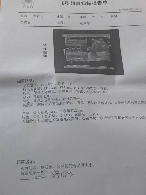 昨天去检查了,结果还不是很理想…说脐带绕颈一周还有缺氧,医生叫我去医院吸氧三天!觉得好麻烦啊!不过