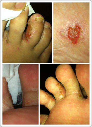 请教这个是脚癣吗?几个脚丫都烂了而且很痒 现在是哺乳期又不知道怎么被传染了灰指甲好痛苦一两月一下子