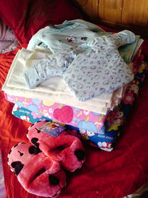 对了还有奶瓶和爽身粉,奶粉有可能需要,还有小勺一个,刚出生要喂白开水需要