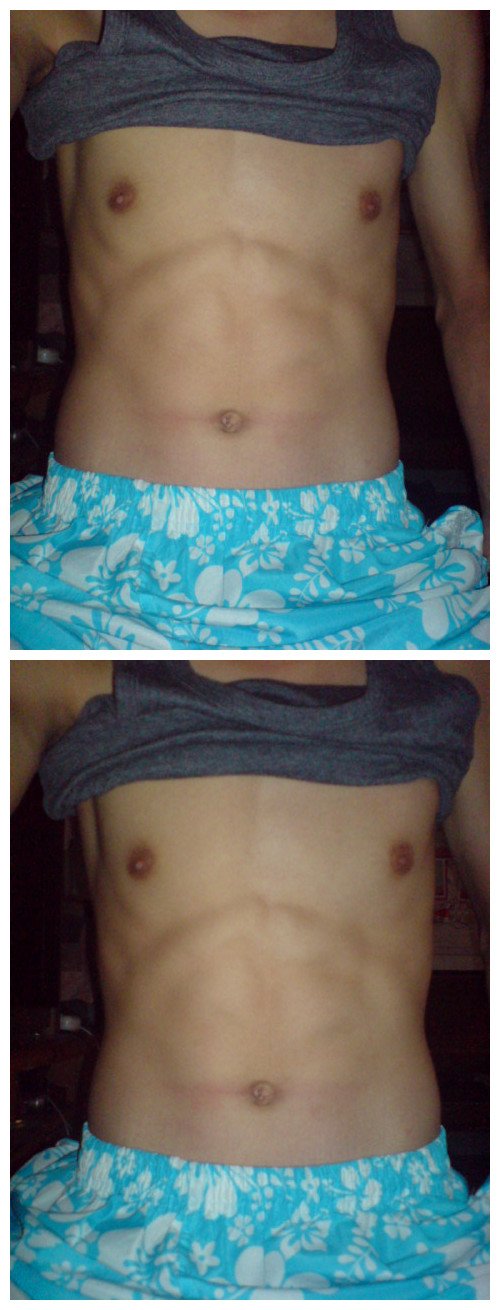 腹肌不对称很正常啊,天生的没办法,胸肌练习业余的就俯卧撑了,专业一点卧推无出其右,卧推对胸肌锻炼很有针对性