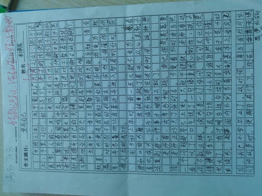 评语没有错,但没有说具体。看了文章,有几点个人想法:总的来说,有这样的结构不错了!文章的开头是将用失败的教训来垒高自己,可第2段却是说,书让人“智”,用知识垒高,缺过渡性的语言。3段没有具体说不喜欢的缘由,所以对后面的改变说服力不大。