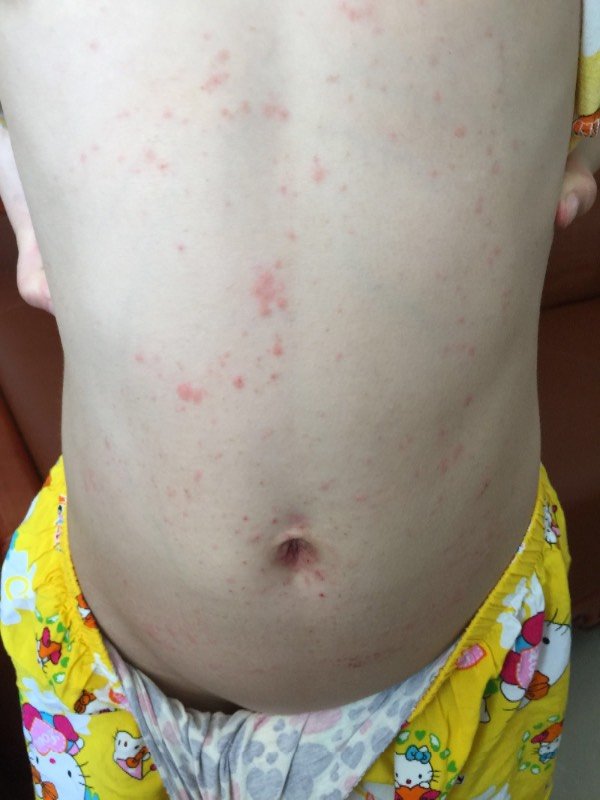小孩肚子上长了红色点点,去看医生说是荨麻疹,开了炉甘石,无极膏搽