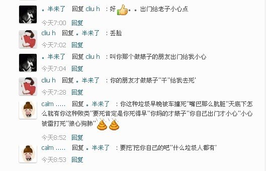 敢问这个世界还有好人吗?如此的人渣,竟然对坐月子的老婆动手,不是打就是骂,这个社会还有公平吗? 点击展开 匿名用户 2013-08-10 12:19 为您推荐: 其他回答 直接干到,哪还这么多废话 匿名用户 2013-08-14 15:58 你认为是好人的他就是好人,公平是相对的,想要公平,除非你说的做的就是公平,这就是社会,是非好坏全看你自己 匿名用户 2013-08-10 16:54 相关问题 遇到人渣啦 怎么办 希望女孩子擦亮眼睛 找个好人 人渣赖国清的禽兽行为 那时我三十六岁,已经有老婆了,大儿子也十三岁了,还有个小儿子,他们住在淡水,我 茂港区计生局陈平让情人杀自己怀孕9个月的老婆真应该下地狱,乱搞男女关系,一脚踏两船,真是人渣 你们说
