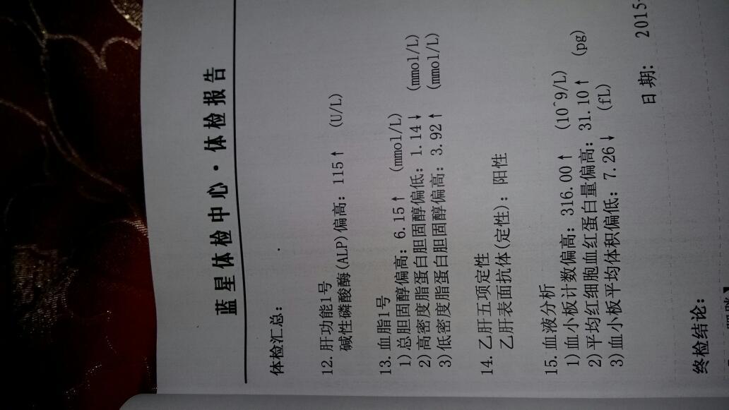麻烦帮我看一下体检报告,哺乳期 点击展开 匿名用户 2015-11-06 13:17 满意回答 从您发的这张报告上来看,基本上是正常的,血脂有点高。但您正属于哺乳期也不建它葛毫战议您控制饮食。等停了哺乳之后再去化验个血脂看一下。是不是恢复到了正常怪斯贸,如果说仍然偏高的话先控制饮食,不行的话再吃药。 cn#BfQkBfBuGa 2015-11-06 13:25 宝宝知道提示您:回答为网友贡献,仅供参考。 相关问题 麻烦看下报告,宝宝六个月体检的 我家宝宝,2周2个月,麻烦您帮忙看看孩子,体检报告正常吗? 帮忙看一下体检报告,关于排卵的,谢谢!