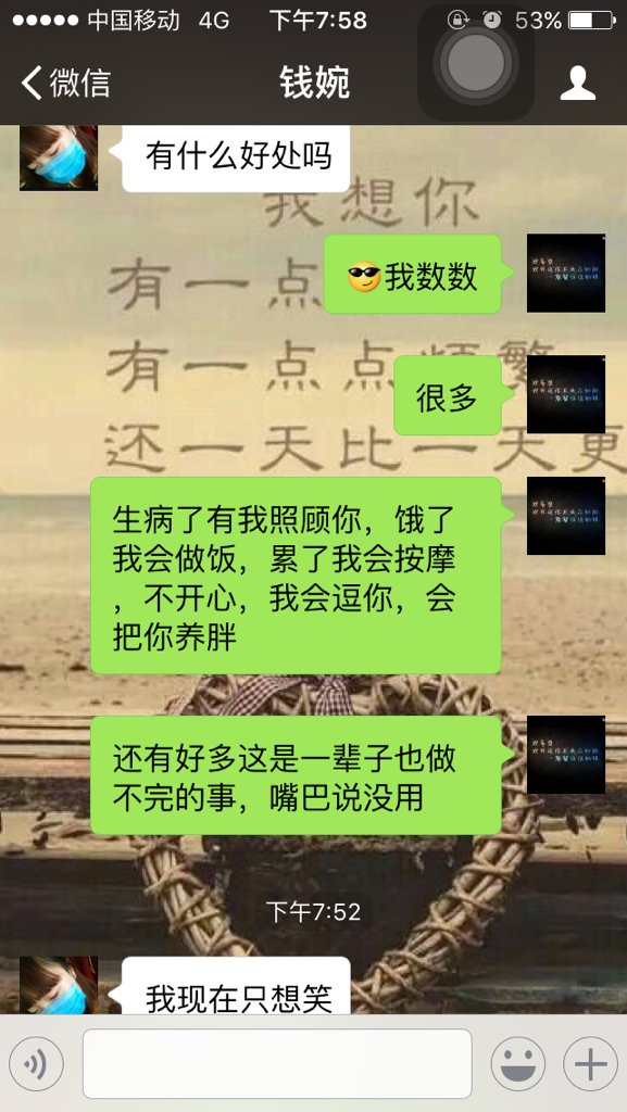 我问我喜欢的女孩做我女朋友好嘛,她说有什么好处,我就说了些甜言蜜语,她说她想笑,啥意思我该怎么做 点击展开 匿名用户 2016-04-20 20:30 满意回答 对方在嘲讽征肿啊小兄弟,你直接每个亲叨命月给你买吃的穿的,天天发红包看答不貌团答应 匿名用户 2016-04-20 20:32 宝宝知道提示您:回答为网友贡献,仅供参考。 为您推荐: 其他回答 你不够浪漫吧!你这样的她见多啦! 匿名用户 2016-04-20 20:41 哈哈,接着装,, 匿名用户 2016-04-20 20:35 也许是高兴的笑啊 匿名用户 2016-04-20 20:33 让你用行动证明 匿名用户 2016-04-20 20:32 加载更多 相关问题 一个我喜欢的女孩说我不关心她,不懂得跟他说甜言蜜语,有什么事都不跟她说,我也不知道是为什么不跟她说 我喜欢那个女孩对我说 左耳最接近心脏 甜言蜜语要说给左耳听 她是什么意思以前她喜欢别人的 女朋友月经一直会疼,也不爱说话 平时话挺多的,现在爱理不理 但是我很想陪陪她 我该怎么做?在线等!!!
