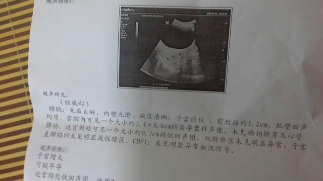 请医生帮我看看这b超多少天了 正常吗 请医生帮我看看这b超多少天了 正常吗 点击展开 雨欣(羊羊) 2014-07-23 09:16 为您推荐: 其他回答 一般是需要等到怀孕6周才可以见的 陈方828 2014-07-24 06:26 你好,看你的这个检查结果,你现在怀孕戤是在5周左右,如果有6周了的话,那一般可以看到胎芽了 陈方828 2014-07-23 09:18 相关问题 有医生在吗?能帮我看看我的b超单子正常吗?大概孕几周了? 医生帮我看看怎么回事啊?怀孕36天,刚刚上完厕所发现纸上有点淡血水的分泌物,去医院打了b超,医生只 怀孕9周,內裤上会有黑褐色分泌物,正常吗?前几天做的B超,医生说胎儿很好 是先兆性流产吗?