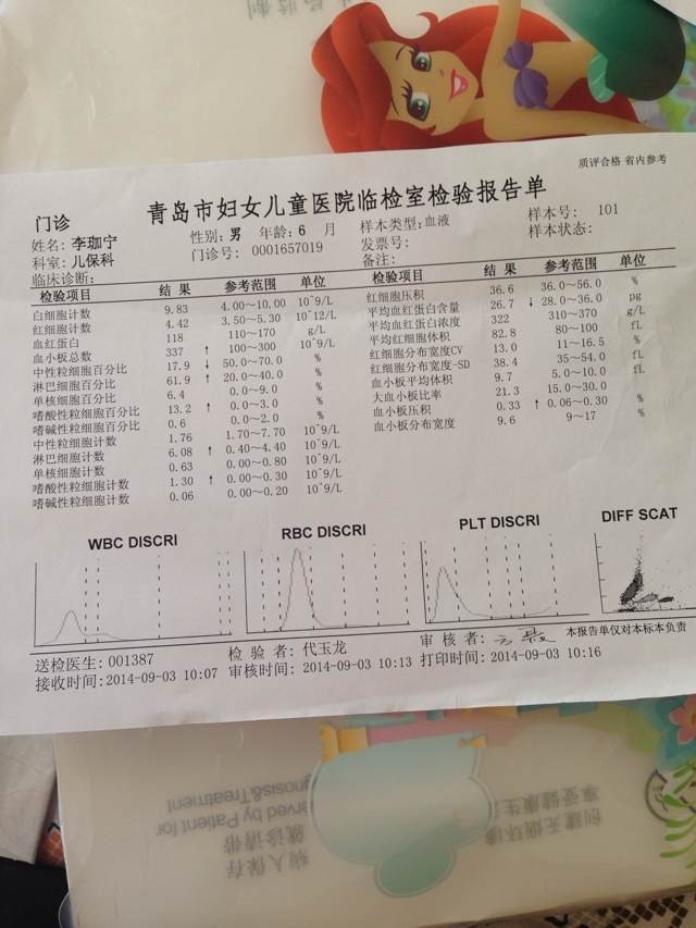 我家宝宝刚满六个月,经检查缺钙,请在线医生帮我看看 我家宝宝刚满六个月,经检查缺钙,请在线医生帮我看看 点击展开 137*****761 2014-09-04 15:15 为您推荐: 其他回答 这是血常规的单子,没有检查血钙,只要没临床症状就不要紧,吃些鱼肝油补钙。 WEIXIANERYUAN 2014-09-04 15:17 你好,这个时候的孩子,可以适当的吃吃鱼肝油或者葡萄糖酸钙的,问题不大的,平时多带宝宝晒晒太阳也是不错的。 唐陈一 2014-09-04 15:16 相关问题 医生!我想检查我家宝宝有没有缺钙!到医院做什么检查?? 宝宝42天体检地时候医生说缺铁缺钙,给开的醋酸钙颗粒和维生素d滴剂(胶囊型)的,现在宝宝缺钙还是特 宝宝的头发往上竖着长,医生说缺钙,真的吗