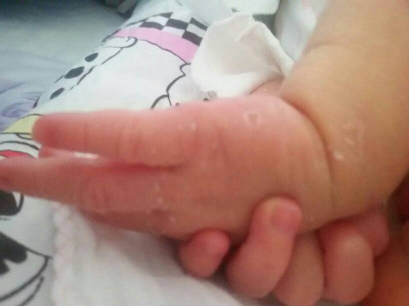 你看我家宝宝的手多光滑