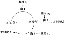A、由图知,基因A1、A2和A3分别控制酶吴丛 1、酶2和酶3的合成,进而控制该动物的体色,能体现基因通过控制酶的合成来控电朗称制代谢从而控制性状,A正确;B、A1、A 2、A3三个复等位基因两两组合,纯合子有A1A1、A2A2、A3A3三种,杂合子有A1A2、A1A 3、A2A3三种,B正确;C、由图知,只要无基因A1或基因A1不表达就会缺乏酶 1,体色就为白色,所以白色个体的基因型有A2A2、A3A3和A2A3三种,而A2A3是杂合子,C错误;D、分析题图可知,黑色个体的基因型只能是A1A 3,该白色雄性个体与多个黑色异性个体交配,后代中出现棕色(A1A2)个体,说明该白色个体必定含有A2基因,其基因型只能是A2A2或A2A3,若为A2A 2,子代只能有A1A2棕色和A2A3白色两种类型,若为A2A3,则子代会有A1A2棕色、A1A3黑色和A2A3白色三种类型,D正确.故选:C.否呈