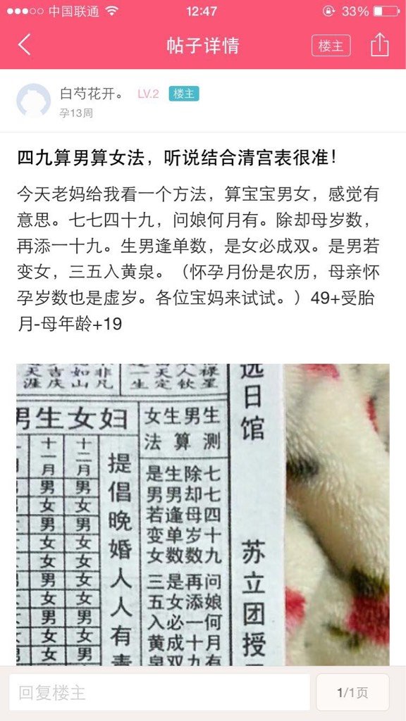 1991年10月11 虚岁是多少呢?按清宫表上算? 1991年10月11 虚岁是多少呢?按清宫表上算? 点击展开 奇-迹 2015-07-17 13:02 为您推荐: 其他回答 算那个不准的,有人帮我算了说是女孩,结果生出来是男孩 宝贝@_@动力 2015-07-17 13:45 阳历还是农历?24 北鼻妈咪贝比520 2015-07-17 13:40 25吧!!!! 215890576 2015-07-17 13:38 虚岁是25没错,到10月11实岁满24 Bellalala5 2015-07-17 13:34 25了呀。。 Bellalala5 2015-07-17 13:26 加载更多 相关问题 我是农历85 12 15阳历86 1 24出生的,按照清宫表上算2013年虚岁应该是多少? 有没有在清宫表上算的男女宝生下来不准的?!我算的女宝,但胎梦一直都是男宝的! 我怀的到底是男孩还是女孩?我在清宫表上算的是男孩,怀孕初期虽然有
