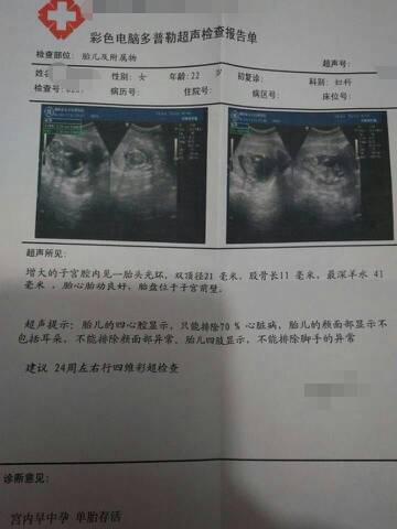 您的检查的结果不能说就是一定是有异常的表现,这样的话就是要注意及时的检查唐氏筛查,以及之后7天复查您的B超,这个可能就是有遮挡导致,不一定就是说的有异常,上面写的就是不能排除,因此您之后复查看看即可知道