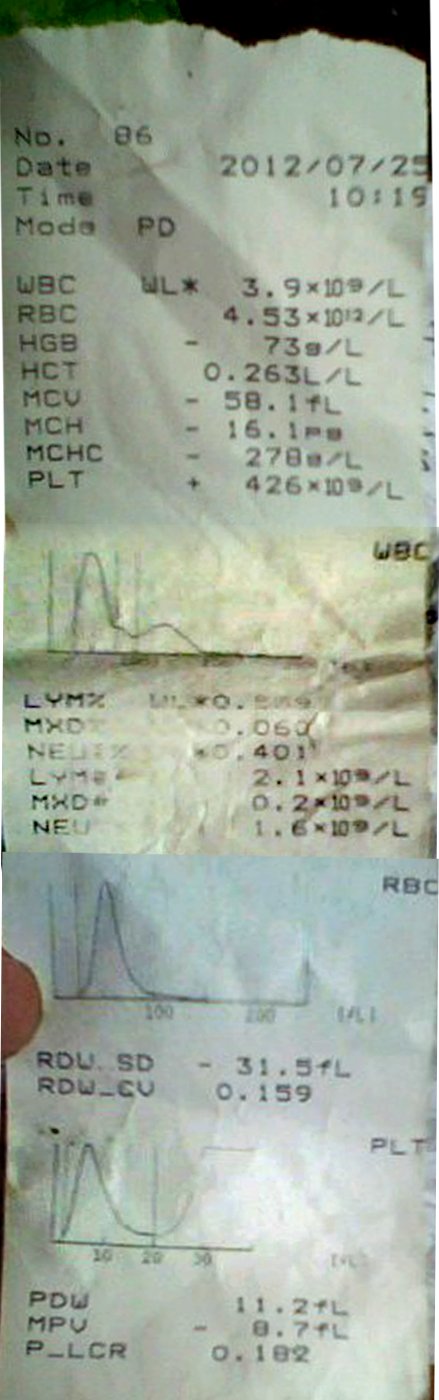 我家宝宝的10个月,请专业人士帮我看看我家宝宝的血常规化验单,看看是为什么贫血