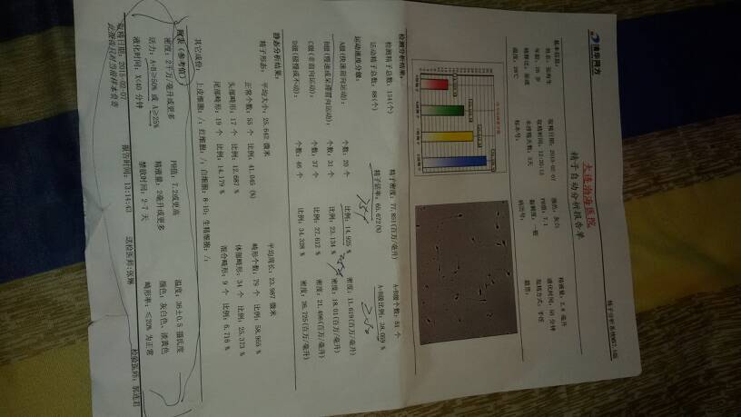 这是我的精子检验报告!请问我能使老婆怀孕吗? 点击展开 匿名用户 2015-02-07 17:18 为您推荐: 其他回答 上传的检查单据不是太清楚,如果检查数值低于正常值时,考虑对生育有影响,建议积极检查并治疗原发病。 爱狂风一样舞蹈 2015-02-07 17:20 相关问题 这个精液及精子检验报告是正常的吗,能怀孕的吗? 我的精子检验报告是乳白色!量是2 5毫升!活动力4!活动80%!这样正常吗?能达到怀孕的要求吗? 我的精子活率为51 06% A级为31 9%B级为4 26%请问能使老婆怀孕吗