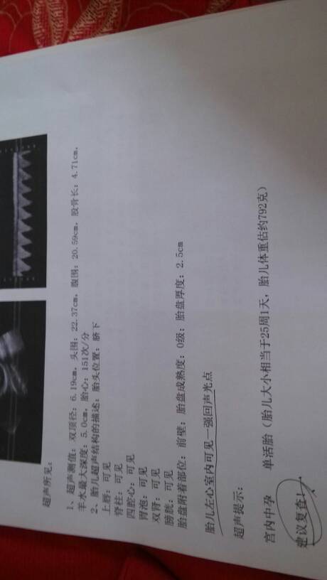 我看到B超报告单上,是怀孕25周加一,所以才说是六个月的
