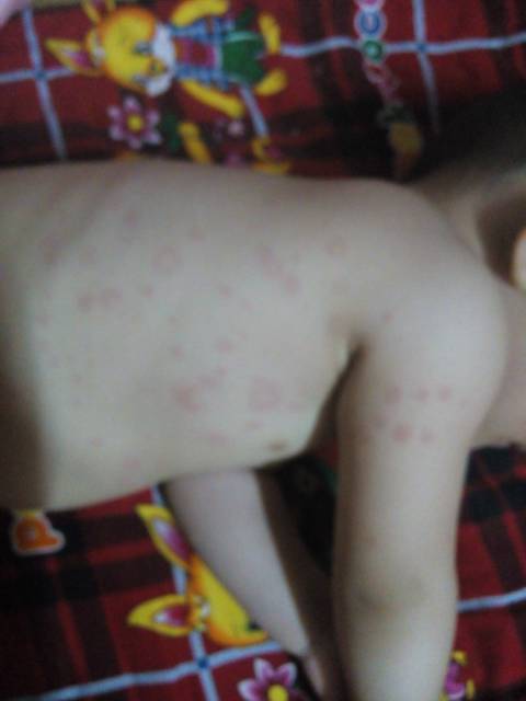 孩子一周岁,身上起满了圆圆的大小不同的疙瘩,中间还有眼,是怎么回事,急急急