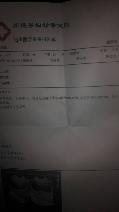 根据描述,此次检查胚胎发育符合孕8周的表现,但原始心管搏动弱口令胚胎发育不良。建议卧床休息,遵医嘱一周后复查以明确诊断。