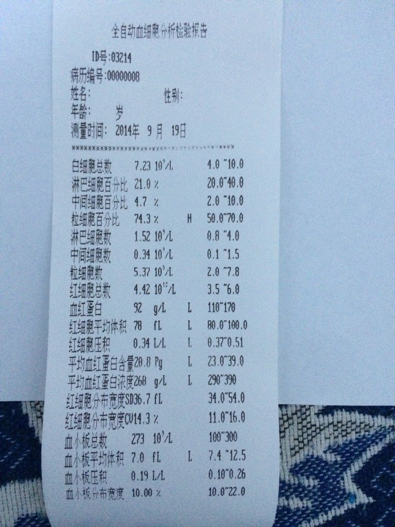 贫血严重吗?最好食疗多吃含蛋白质和钙多的食物,营养要均衡,那时候我怀孕前期去医院检查有些贫血,那时候还在上班在公司吃的伙食不好,到回到家里就营养跟上来了就正常了。
