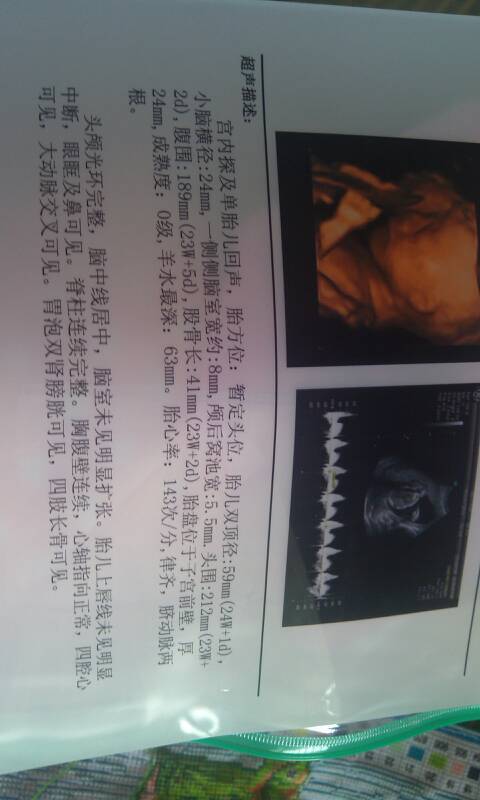 请医生帮我看一下这张四维彩超正常吗?因为昨天中午做完医生下班了所以没看到 点击展开 好好爱自己! 2014-07-27 10:02 为您推荐: 其他回答 你好,这个时候还算可以,你现在就是要多注意加强营养,这样宝宝也会吸收的比较快,定期去医院检查。 1966839485是我 2014-07-27 11:49 相关问题 刚刚做完的b超,结果赶上医生下班了 想请在线的医生帮忙看一下除了胎儿脐带绕颈一周外还有其它问题没有 想问下医生,做了唐氏筛查,和四维彩超都还好,还要做什么检查,生健康宝宝!因为我上班对电脑,下班回家 孕31+5周,今天做了四维彩超,显示脐动脉SD3 05,医生看了没说什么,请问这个正常吗?是否宝宝