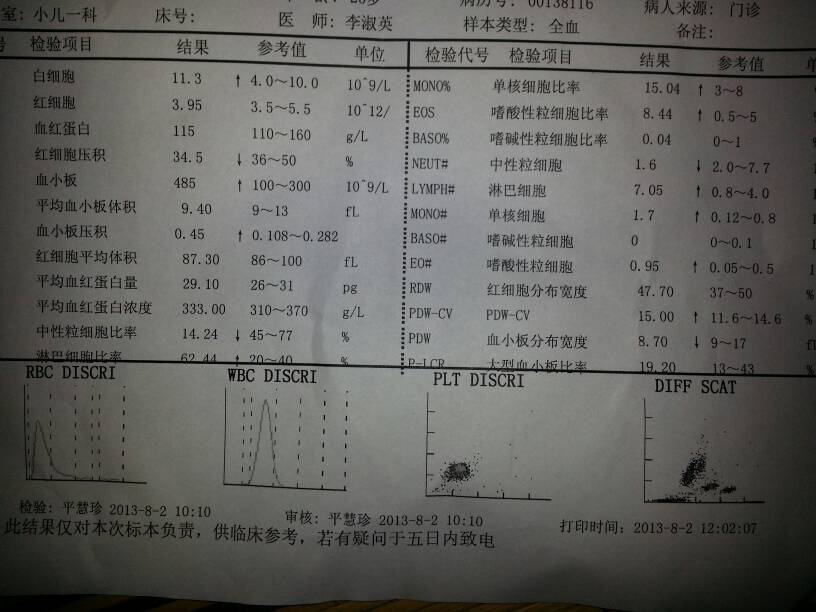 正常新生儿淋巴细胞与中性粒细胞的比例与成人相反,单核细胞升高有可能是生理反应也可能与感染或溶血相关。因有G6PD缺乏症,要注意是否有新生儿黄疸,溶血性贫血、核黄疸的发生,最好是住院治疗。患者应终身携带健康处方,每次就医及用药均应出示,并自行对照排除。处方如下: 1.禁食蚕豆或蚕豆生加工品,避免在蚕豆...