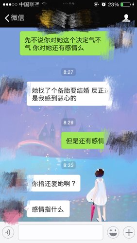 感觉你男票的重点是那女的找了备胎他觉得反感,并不是对这个女生没有感觉了,,,后面还问感情指什么,,,明显是个250问题,,,怪怪的