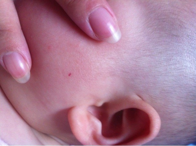 今天早上刚发现,宝宝三个半月,左脸颊有一小点轰,表面无创伤,担心是不是血管瘤?还请帮忙看看 点击展开 大头麻麻 2015-01-28 12:03 为您推荐: 其他回答 你家的宝宝三个半月,左脸颊有一小红点是不是血管瘤?你要看他的生长速度必要时去医院皮肤科冷冻治疗 ҽ963 2015-01-28 13:45 相关问题 貌似血管瘤!宝宝快五个月了,两三个月时发现左边脸颊靠耳朵处有个突起,安静的时候没有,左侧的时候或者用力、哭的时候就会突出来,直径一厘米大,完全是皮下的,不是皮肤 宝宝脸上起了小红疙瘩,两面脸颊都有,今天第二天了,我用奶汁擦了,不见多也不见少,这个可以用药吗? 两个月大的宝宝血管瘤激光手术创伤能用积雪苷霜软膏吗