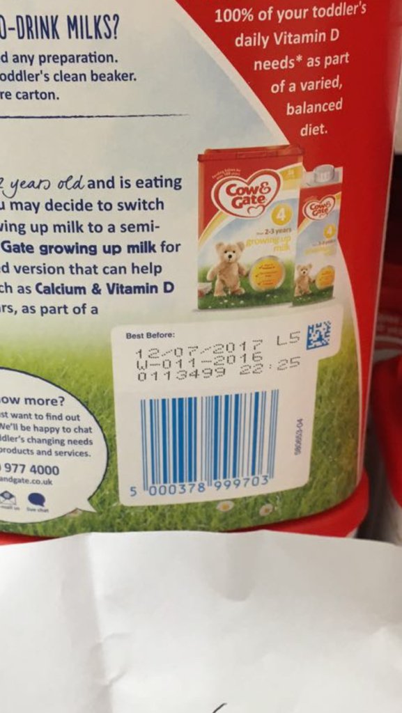 别帮忙代购的英国牛栏,为什么日期后面是L5,谁懂的帮忙看看是不是真的奶粉,刚才用手机扫一扫没有反应
