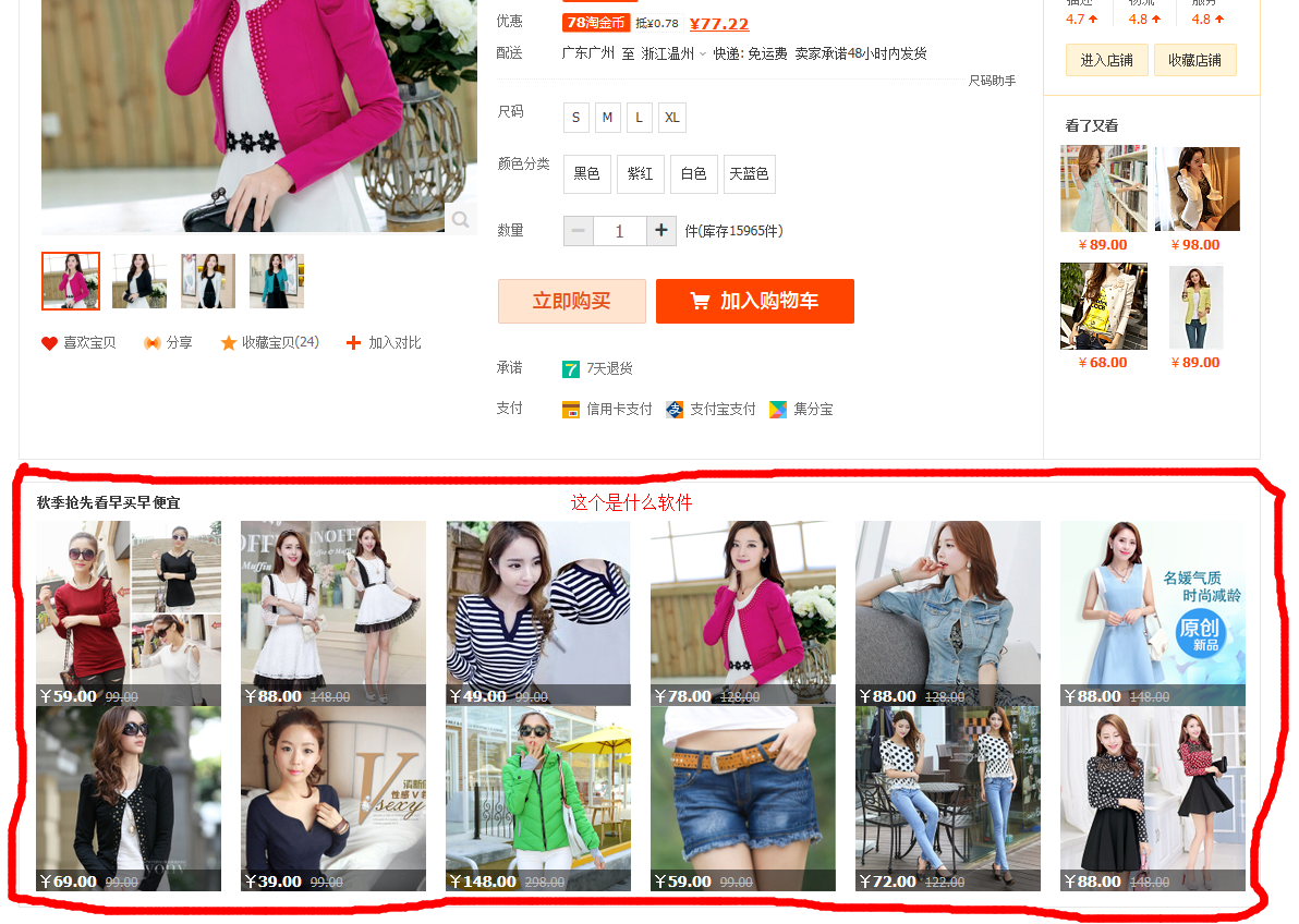 淘宝宝贝描述中如下图中所使用的是什么软件 如题,下图图片中是用什么方法做出来的。我是新手,请教,谢谢。 点击展开 匿名用户 2014-08-19 09:16 推荐回答 这个是苦洞挎关联营销模块司认,很多第三方软件里面附带的功能,你可以去卖家中心,左侧下面有铜吊个软件服务,点我要订制,搜一下营销软件。 匿名用户 2014-08-19 09:53 宝宝知道提示您:回答为网友贡献,仅供参考。 为您推荐: 其他回答 这应该是淘宝卖家服务中开通的某个服务。 尾烨熠_r0LC 2014-08-19 09:26 这个需要买的... 匿名用户 2014-08-19 09:17 相关问题 有制作淘宝宝贝描述的软件吗 跪求复制淘宝宝贝以及它的描述等的免费软件,在线等… 跪求复制淘宝宝贝以及它的描述等的免费软件,在线等…