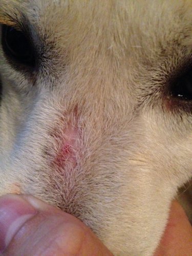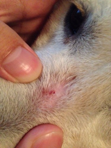 目前看不清是皮肤病,还是被其它狗狗欺负了,有和别的狗打斗的痕迹吗?