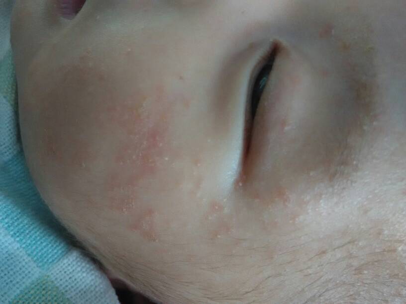 宝宝一个月7天,是蚕豆宝宝,满月第二天去打预防针之后,脸上跟头皮就冒出这红色的小点,自己煮些水洗脸