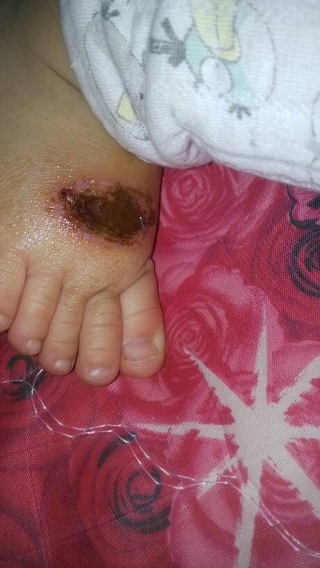 问:一岁半小孩把去油渍清洁剂盖子揭开倒出来了,从手上倒到脚上,及时发现了就把手冲干净,可是没留意到