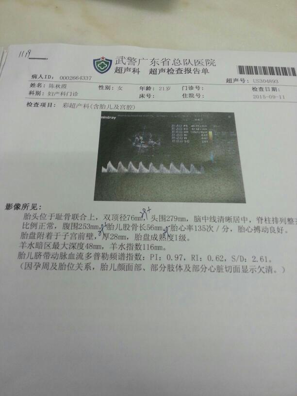 29周照的B超,胎头位于耻骨联合上,双顶径76mm,头围279mm,腹围253mm,胎儿股骨长56 29周照的B超,胎头位于耻骨联合上,双顶径76mm,头围279mm,腹围253mm,胎儿股骨长56mm,胎心率135次,多重了 点击展开 132*****306_Awsh 2015-10-08 10:30 为您推荐: 其他回答 三斤多,后两个月胎宝宝长得很快的,一周大概长半斤 新可密密 2015-10-12 16:17 不会算那祝宝妈好孕 小丸子! 2015-10-09 17:06 问问医生吧 随釦説钚鍀 2015-10-08 16:16 问医生。。 @《过去己过去》 2015-10-08 14:25 三斤二两! 林晨妈咪! 2015-10-08 14:04 加载更多 相关问题 亲们,,能看得出宝宝有多大吗?29周照的B超,胎头位于耻骨联合上,双顶径76mm,头围279m 你好,我是2号做了引产,12号去做了彩超复查,子宫大小76 56 76mm体积增大形态饱满,回声均 我怀孕74天了,B超孕囊是47*25*56,宫体大小是79*67*81,请问男孩几率大,还是女孩几率大?