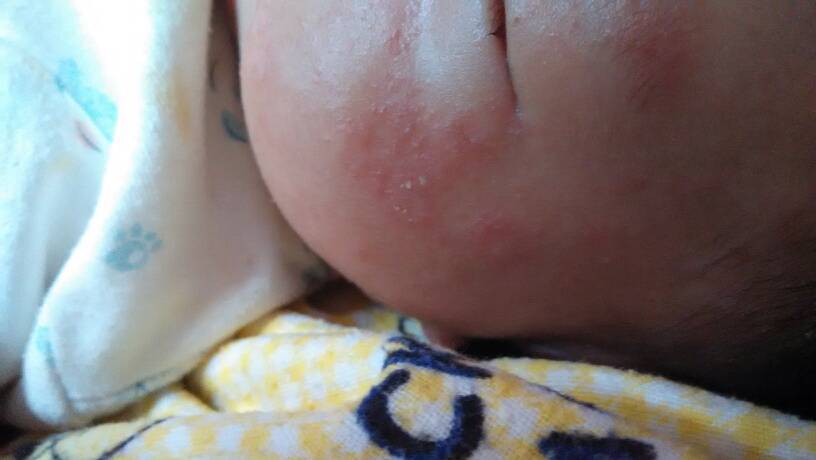 湿疹,擦点郁美净,保持脸上干爽,喂奶的时候奶滴到脸上要及时用温水清洗掉,