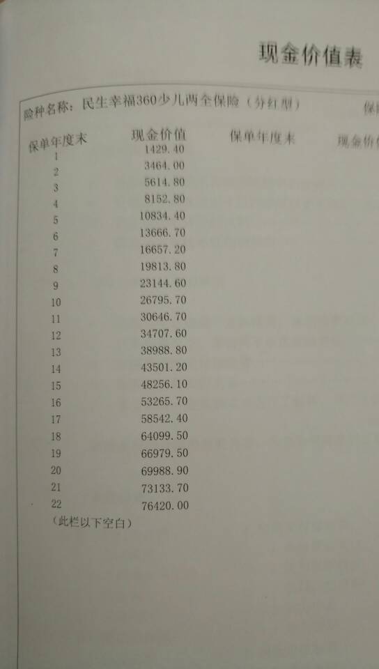 我在民生人寿给零岁宝宝买了十份幸福360保险,交18年,22岁领取,能领多少钱 点击展开 150*****568_0UCz 2016-08-05 10:55 为您推荐: 其他回答 你的电话多少.我告诉你,我是保险公司的 水痛 2016-08-05 13:57 合同上没写? 匿名用户 2016-08-05 12:13 你好,能提供你的年龄性别吗?我大概帮你分析一下 匿名用户 2016-08-05 10:58 相关问题 我给宝宝买了泰康人寿的幸福人生保险,一年交4万,共10年,介绍说20年能回本,可我觉得要60年啊,请 中国人寿保险国寿计划生育妇幼幸福意外伤害保险AB卡 您好!我给宝宝买了幸福人寿保险是分红型的,一年6500块钱不知道好不好