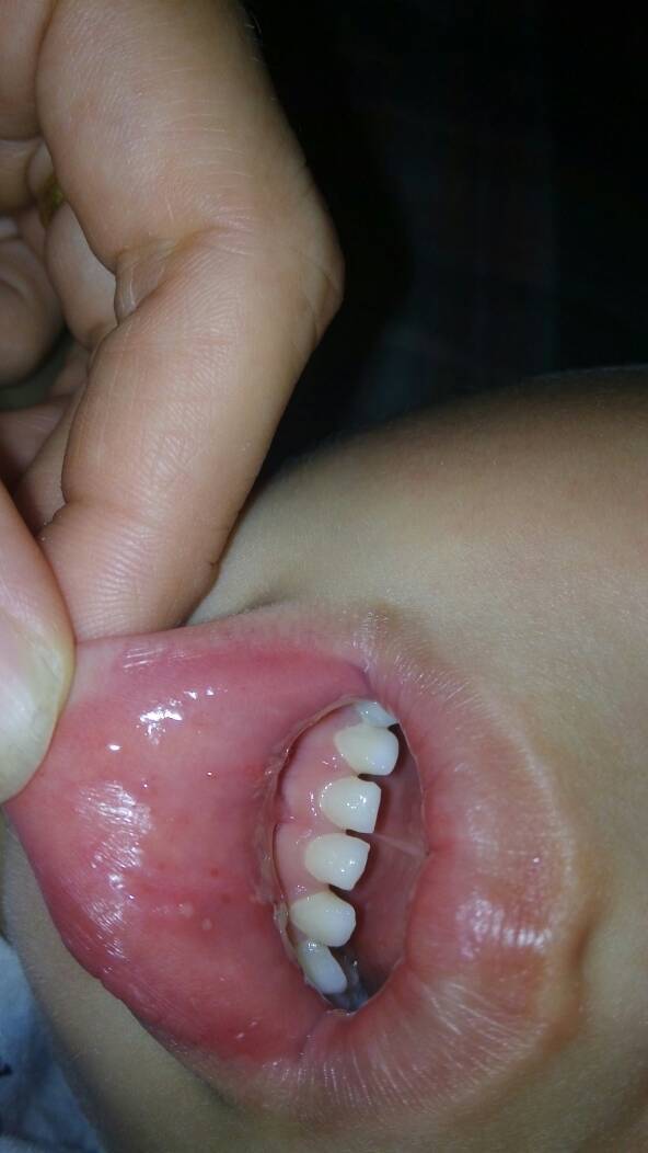 小儿两岁五个月,宝宝这两天咳嗽黄鼻涕,眼屎,嘴里又小白色和红色的疙瘩,今早又发烧,去诊所看了说支气管发炎,给打了针,也吃药了,还发烧,很担心,因为这两天和儿子一起玩的小朋友两个得了手足口,谁认识帮忙看一下小儿嘴里的是不是手足口