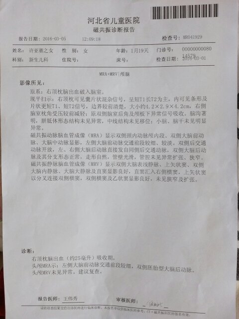 跪谢!有懂的帮忙看看,这是恢复中?还是有别的变化孩子才两个月,新生儿缺血缺氧性脑病颅内出血,有治愈 跪谢!有懂的帮忙看看,这是恢复中?还是有别的变化孩子才两个月,新生儿缺血缺氧性脑病颅内出血,有治愈好的吗? 点击展开 匿名用户 2016-03-16 16:09 为您推荐: 其他回答 你该把出生时拍的片传上来,有个对比。 季韵磬_1RnB 2016-03-17 21:24 出生情况很差? 匿名用户 2016-03-16 21:38 相关问题 新生儿缺氧缺血性脑病合并颅内出血的第二个疗程主要做什么 求新生儿晚发性维生素K缺乏并颅内出血的相关资料 我是山东聊城 小孩得了缺氧性脑病,新生儿1天 她妈妈没有新农合 但有医疗保险 小孩住院能报销吗?去那问?